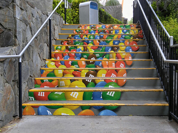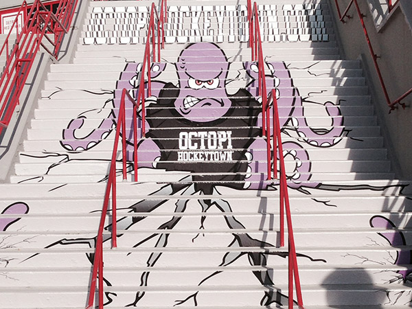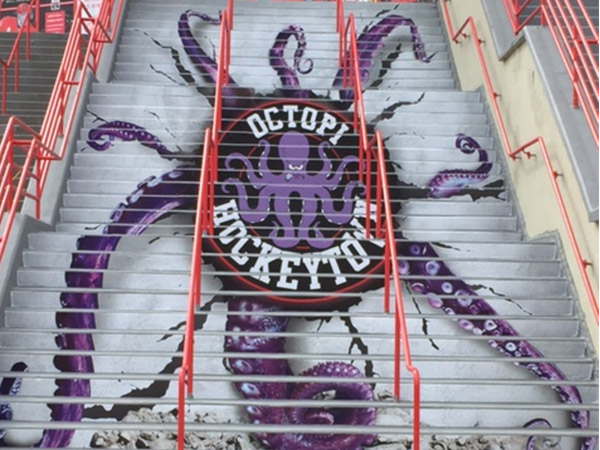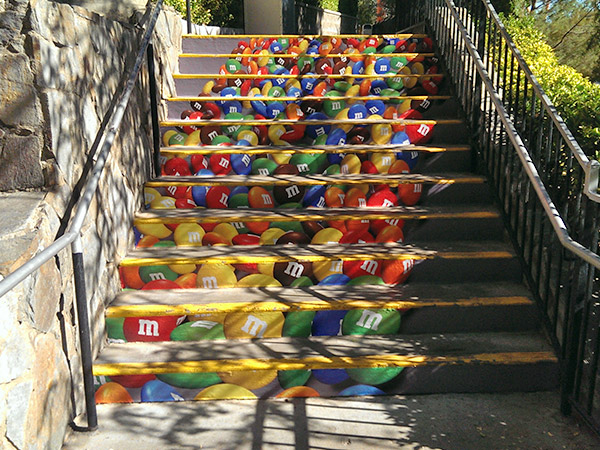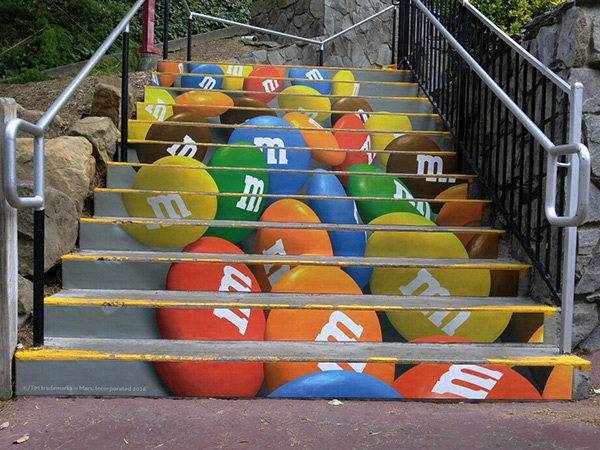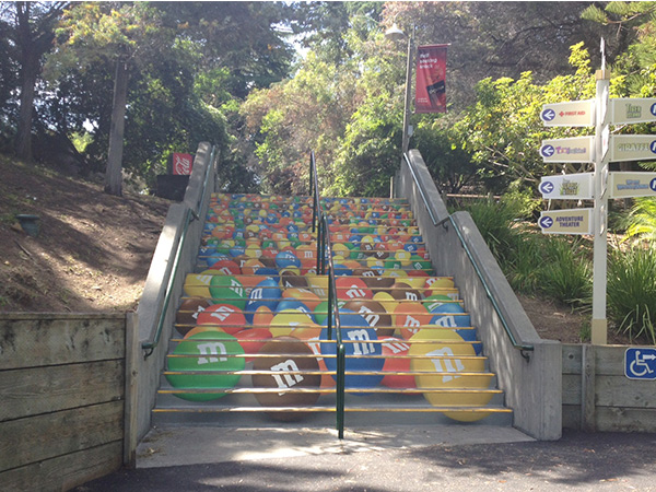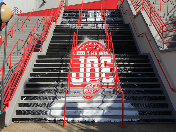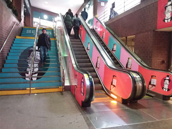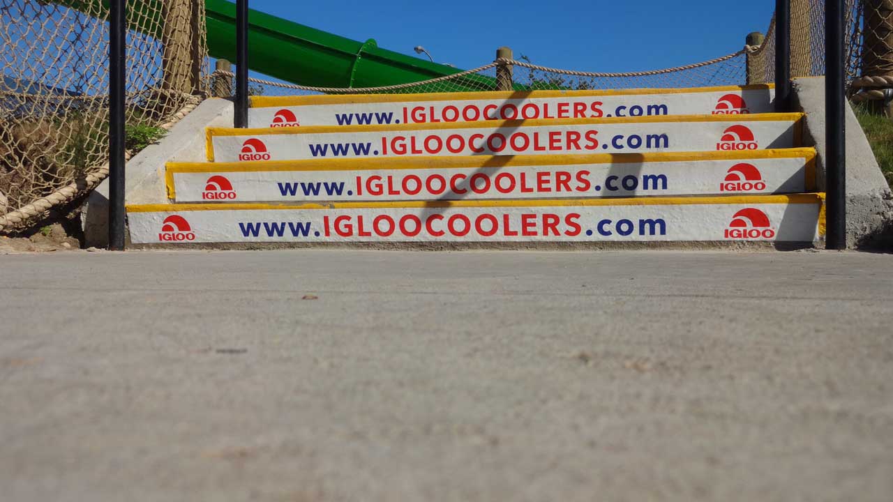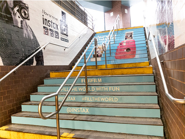 EXCLUSIVE RIGHTS TO STAIR GRAPHICS SINCE 1998, WE HAVE A PROPRIETARY MATERIAL SPECIFICALLY MADE FOR STAIR GRAPHIC ADVERTISING.